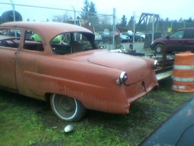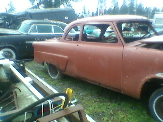 1954 Ford Mainline restoration project. Body sanded and primered. No engine or transm, no interior, rolling shell. Fox body front suspension, 9 inch rear. This vehicle and a 1954 Skyliner and 1953 Crestline, All 3 for $2100.